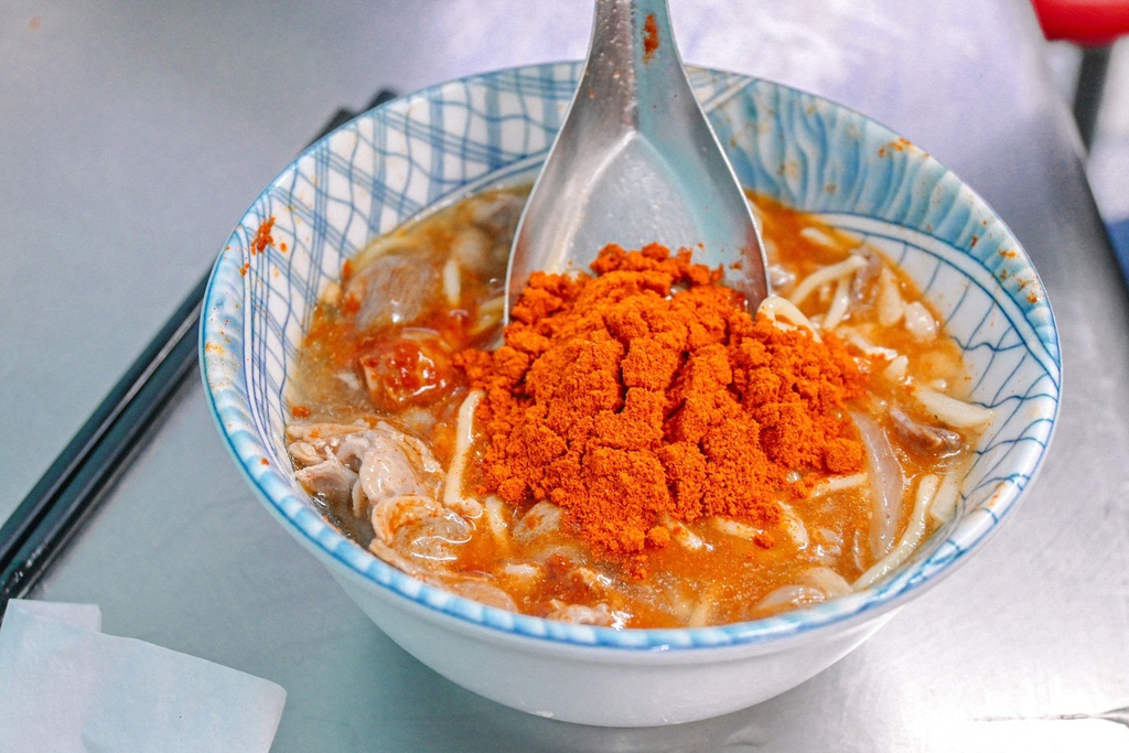 辣椒粉又辣又香,配上生炒鴨肉焿真是絕配,辣度吃不過癮,後續又加了一次辣椒粉,我被嗆得辣喉又辣眼淚、鼻水直噴,爽度UP。