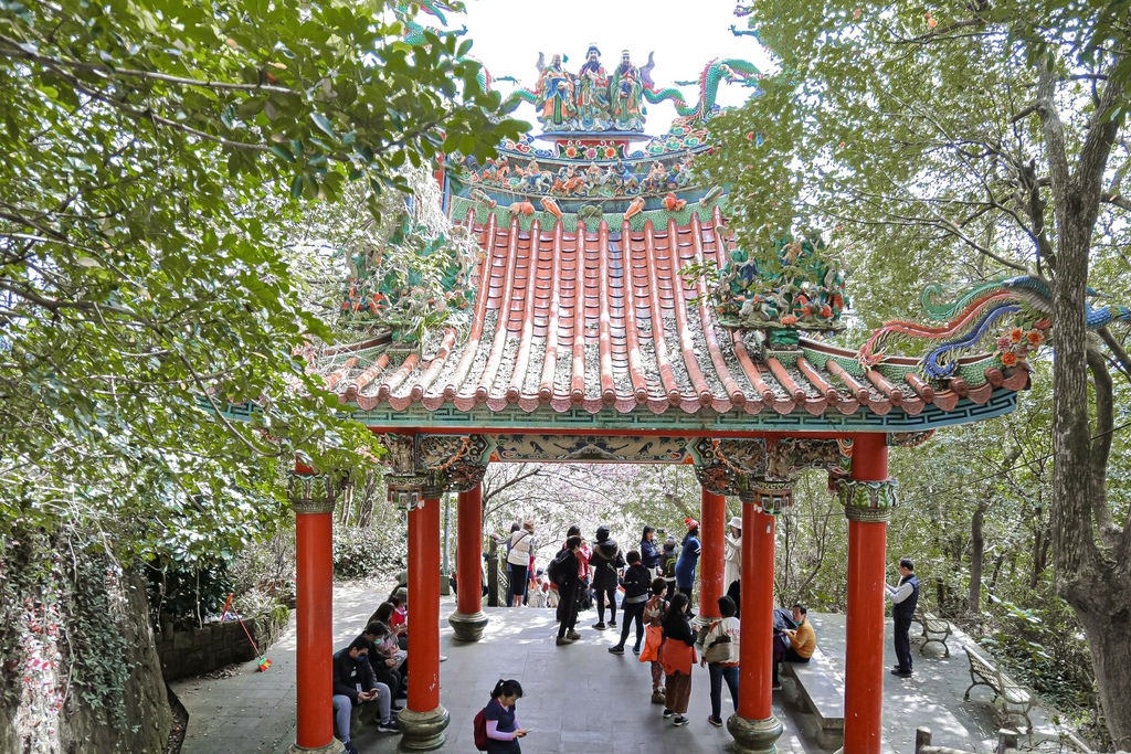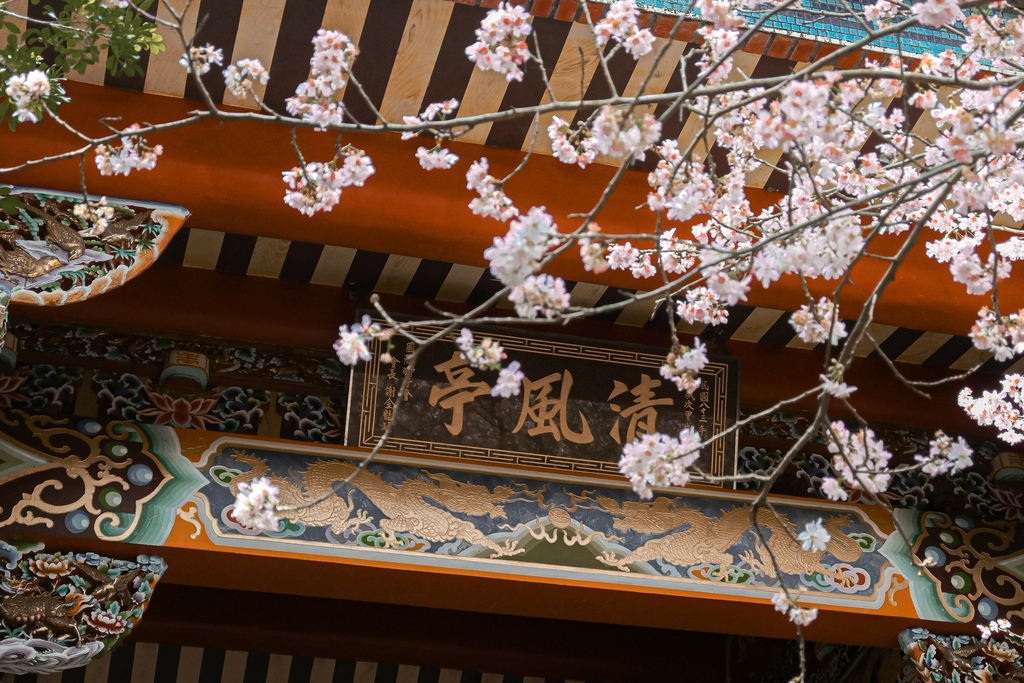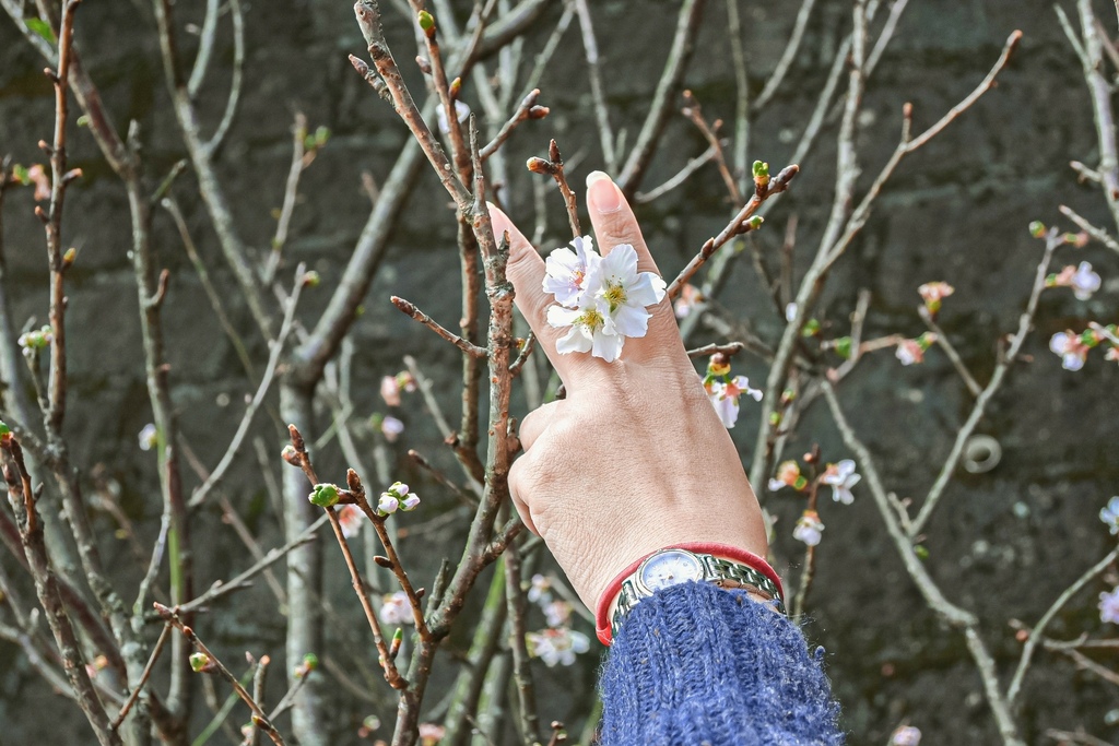 最讓我驚豔、也最喜歡的拍照場景是中國古風的清風亭,由上往下看的視野極佳,左右兩旁交錯的椿寒櫻就像是櫻花隧道非常狀觀,也美得讓不少人拿起手機拍下櫻花最美的時刻!