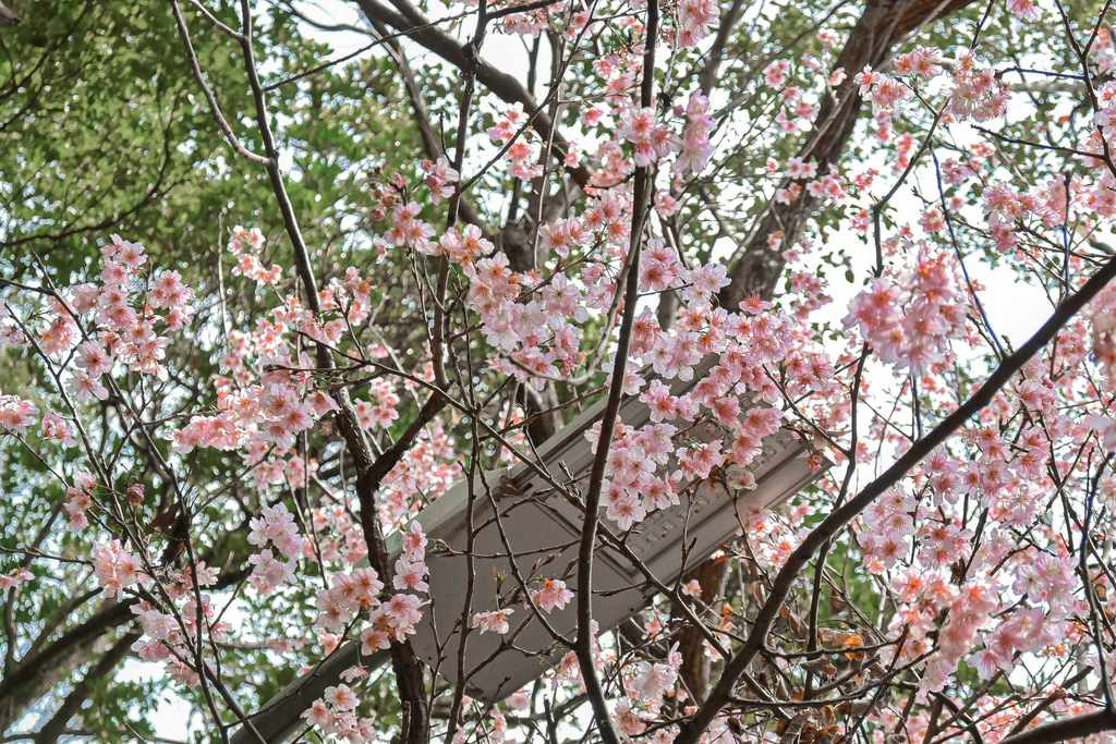 前陣子去過新店陽光運動公園賞河津櫻,是與〈內湖碧山巖〉是完全不一樣的氛圍,一樣粉,〈內湖碧山巖〉更古色古香,所以才這麼有一秒來到日本參拜神社的感覺。