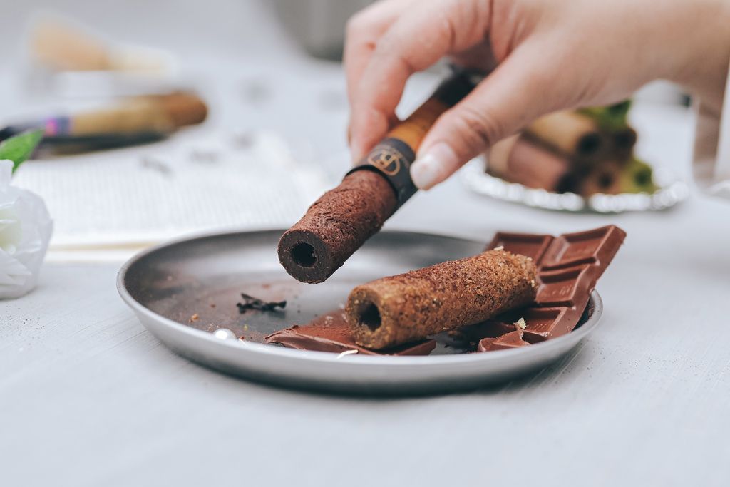 使用85%比利時黑巧與可可粉製作,呈現巧克力完美的苦甜與層次,漸漸化入嘴中但又帶著蛋捲酥脆厚實的滿足口感,超級有深度,是大人味巧克力但也是小孩子會喜歡的甜甜風味,是巧克力控絕對不能錯過的一款。