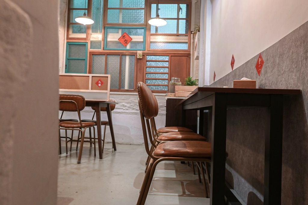 一樓用餐區周圍佈置都是老闆寫下的幽默字語,讓人會心一笑,椅子是網美餐廳會提供的座椅,坐下去好舒適,感覺都像是咖啡廳的氛圍了,而且周圍有綠色植物的靜謐感及老房子暗色調,有著慢時光愜意的感受。