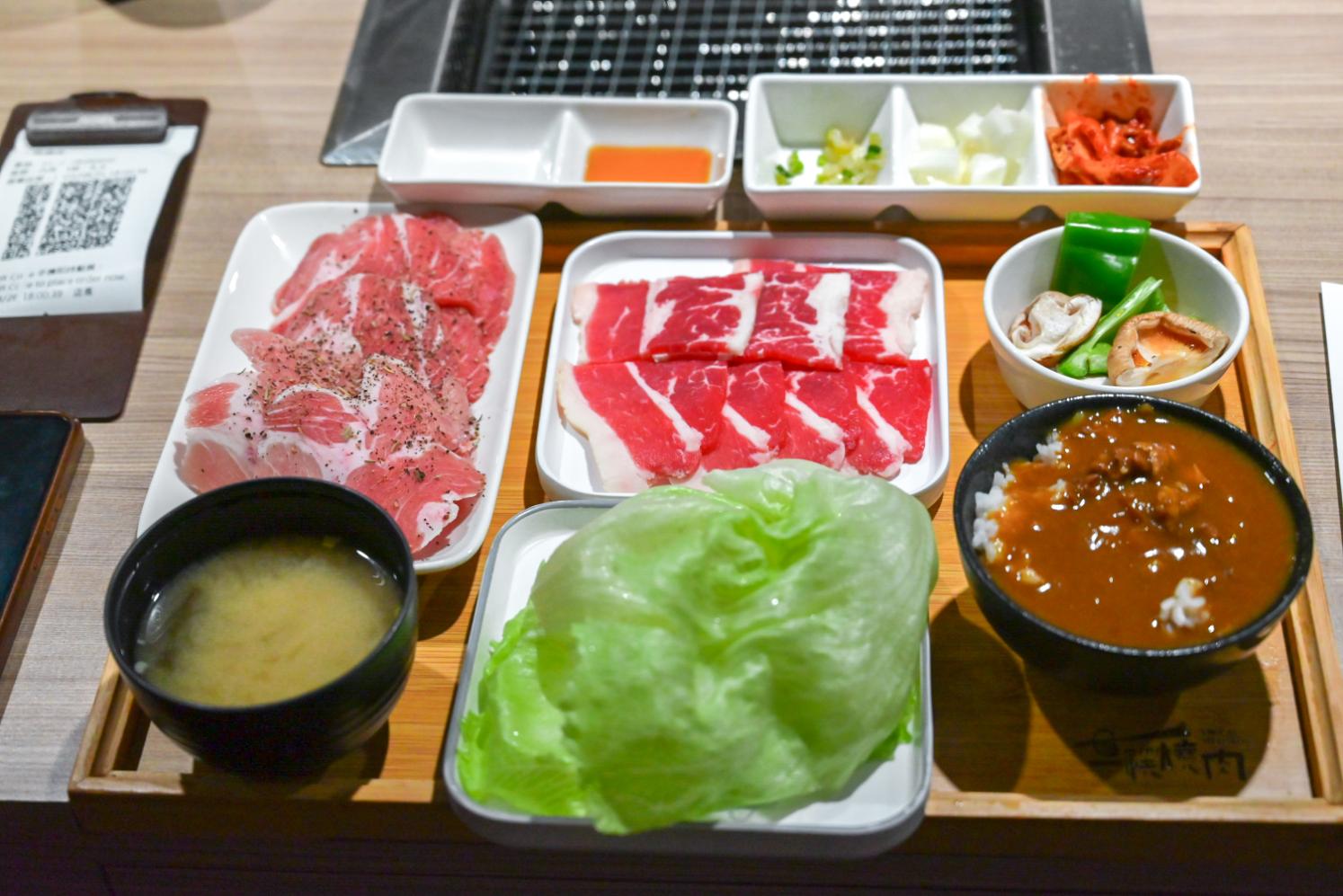 一人就可以來燒肉,單人套餐218元起,不收服務費,咖哩飯、小菜、冰品、飲料等自助區都自助吃到飽