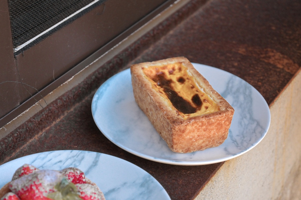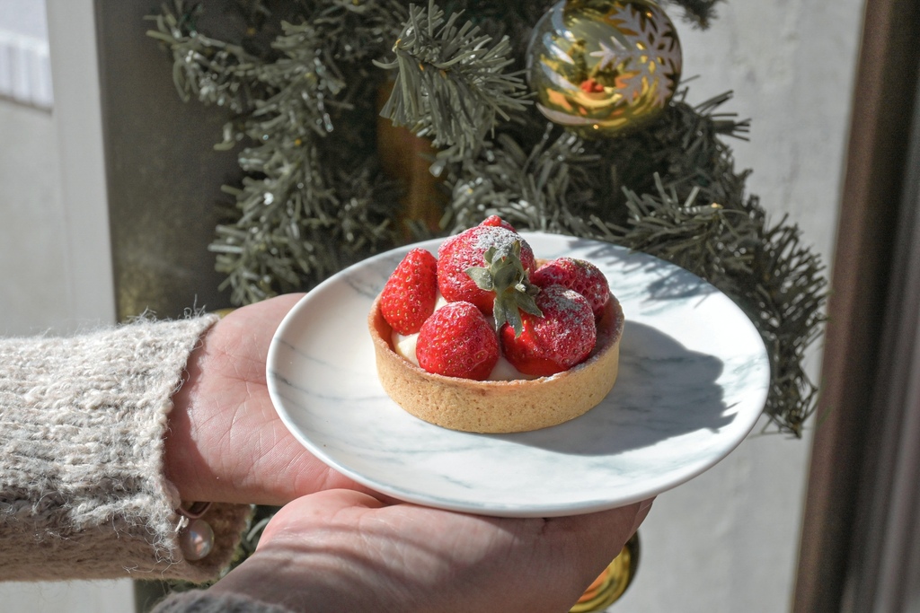 草莓塔是季節款有興趣可以電話詢問店家!上面大氣的放了6顆草莓,草莓天然果香酸酸甜甜滋味很不錯,塔皮很薄酥很香,配上卡士達內餡,還不錯呢!