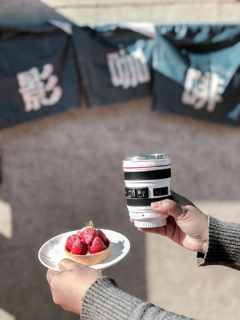 超有創意的鏡頭咖啡杯只有在這看到,可說是獨家限定款,拍起照來都有如神助XD,咖啡沁涼順口喝起來偏酸些,香氣很足,配甜點很剛好。
