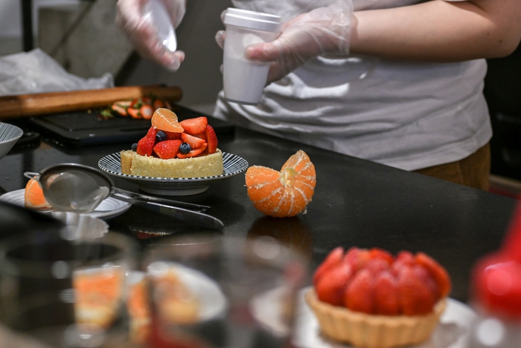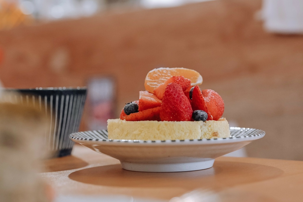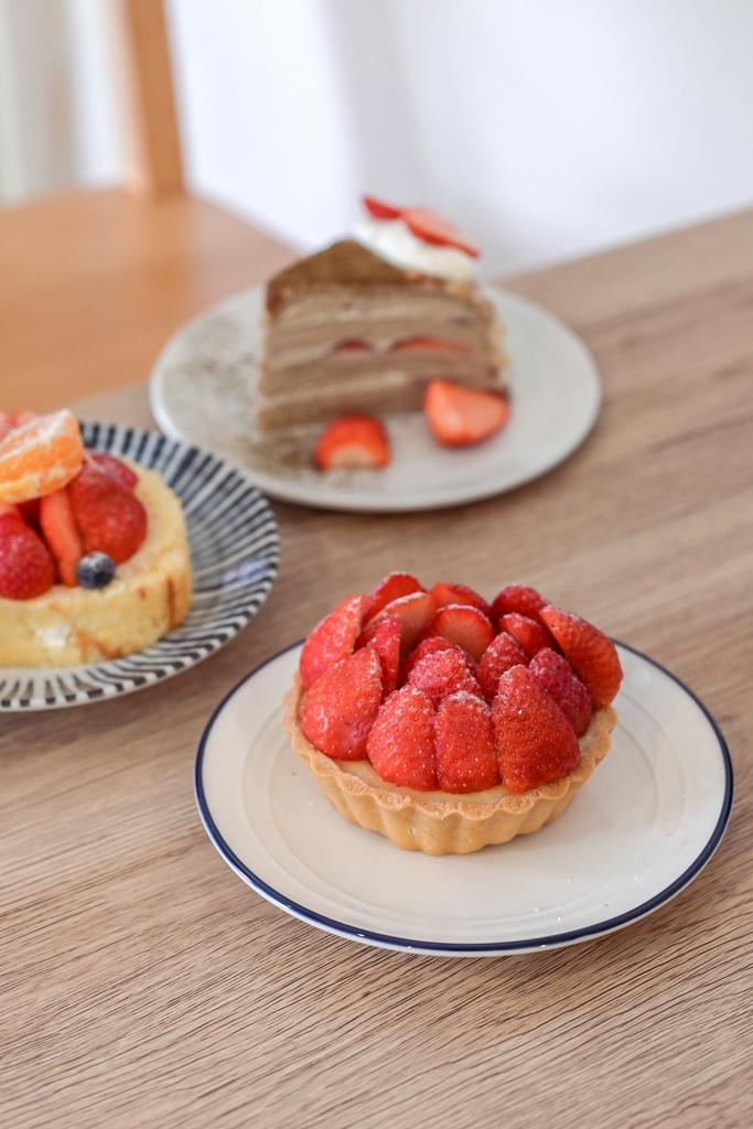 冬季限定款草莓塔,塔皮現烤、現場在組裝起來,塞入卡斯達醬再擺上切半草莓片,撒上糖粉彷如下雪般浪漫氛圍,整個過程超級療癒!草莓酸甜可口配上帶有牛奶的香濃的卡士達醬,酥酥塔皮整體搭配起來有夠好吃。