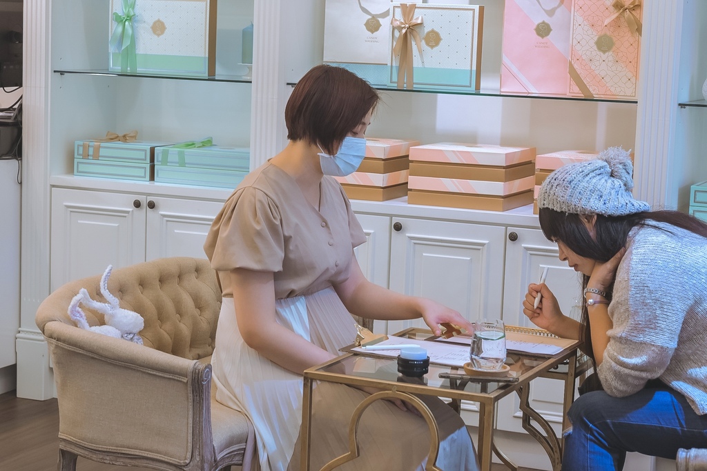 這次來門市體驗試吃喜餅,專員告知我每日會排定要來試吃喜餅新人時間,所以在試吃時是能夠在專員專業的導覽及回答下有更多的私人空間,不被打擾而自在的。