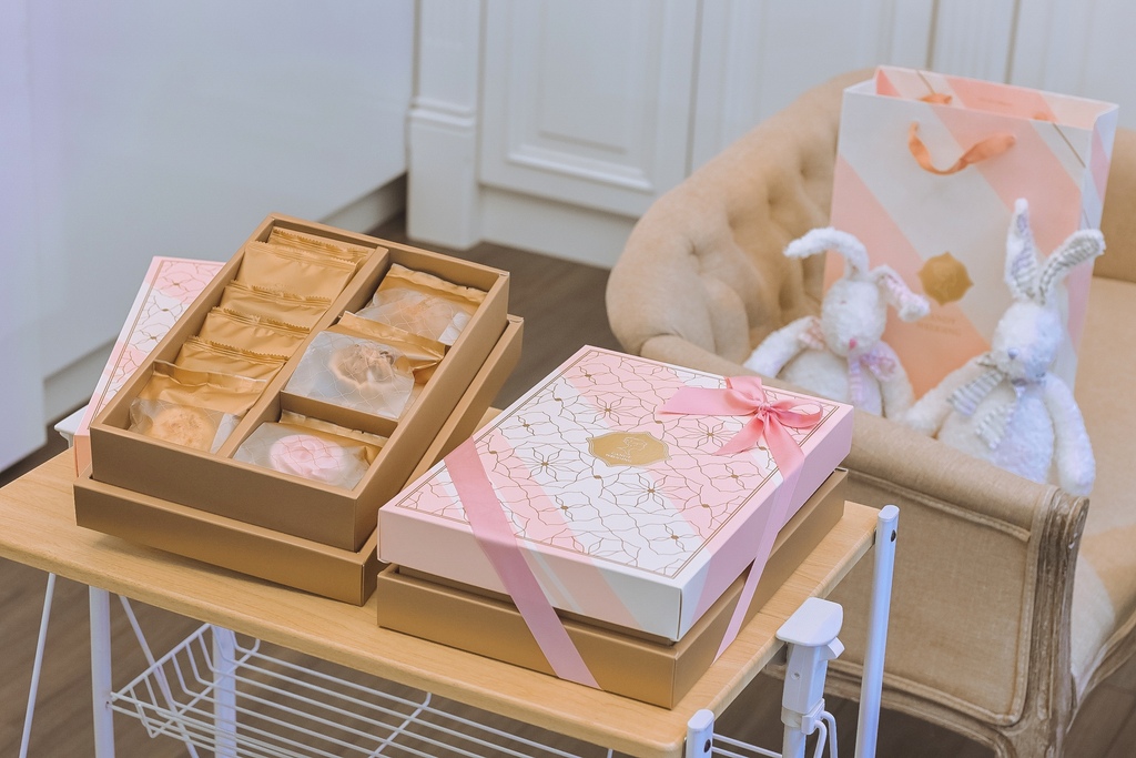 店內販售蛋糕、彌月禮盒等商品,親親寶貝禮盒中的蛋糕可常溫保存10天,但其它蛋糕的保存期限略有不同(老爺爺無花果蛋糕常溫7天 / 幸福味蕾其它口味、最愛戚風蛋糕冷凍7天),餅乾可常溫保存20天,除了現場販售也提供宅配服務, 禮盒柔和甜美的色調,每一盒都會附上一個提袋,不管送禮或自己吃都很可以。