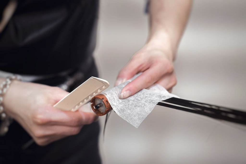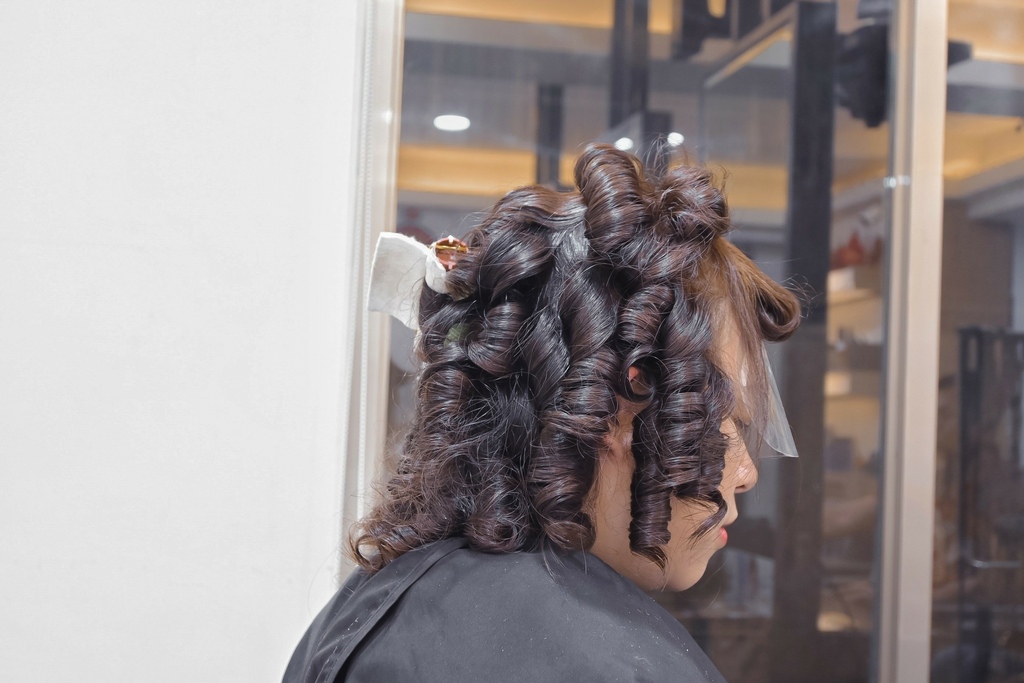使用溫塑燙,耳朵處開始向下燙捲,貼心將每一捲都仔細分開並多加墊片與髮捲隔離,因為畢竟是120度高溫,避面燙到頭皮。