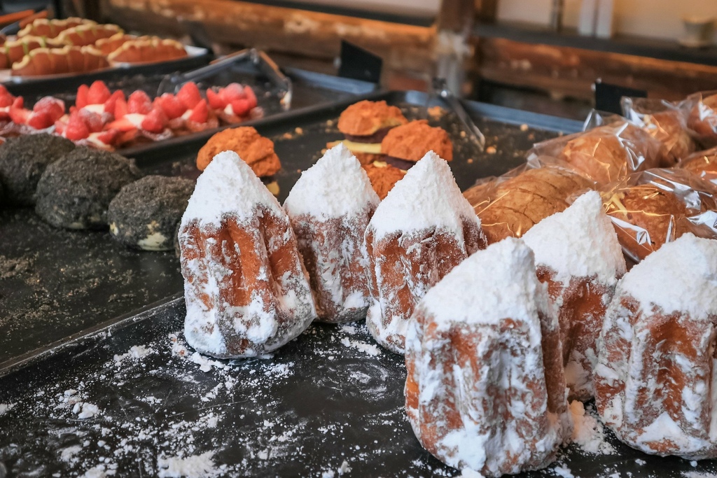 細白糖粉如白雪小山一樣,是招牌中的王牌,幾乎人人手一顆都融化在那如蜜糖裡的小雪山中。入口綿密就化開的鬆軟糖粉,麵包柔軟,細緻溼潤的香甜如雲朵,多層次口感,爆炸好吃呀!