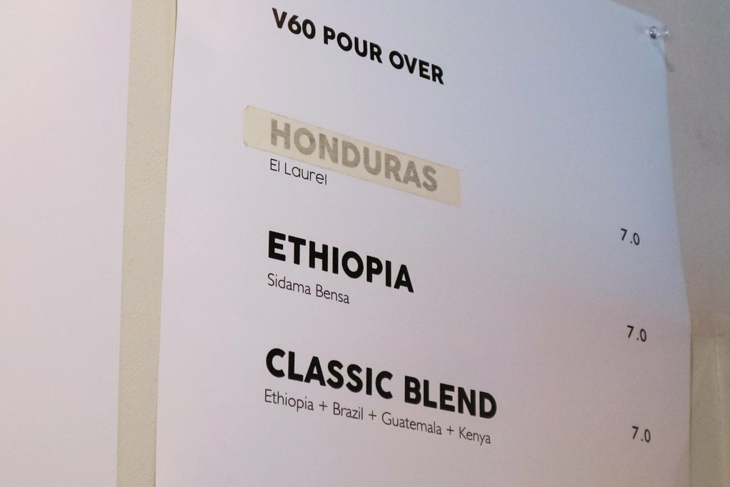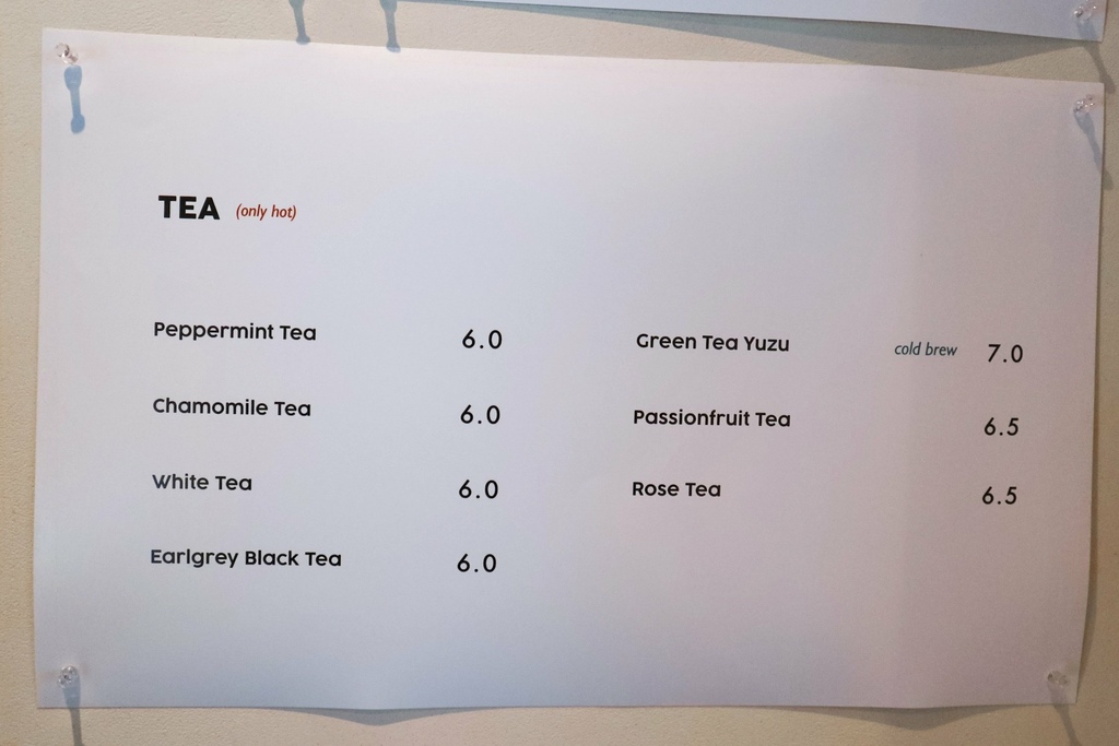 販售咖啡、茶、其它果汁、優格飲料,還有手沖咖啡。