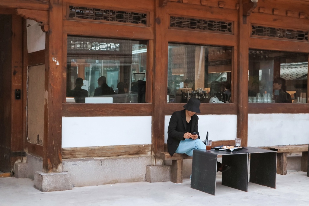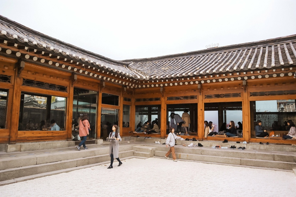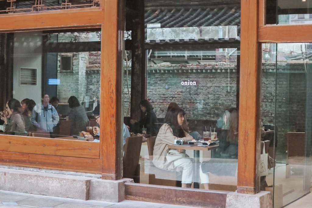 Onion三間店風格不同,各有特色,安國店風格保留了傳統韓屋內的格局,有席地木質地板、不拖鞋的現代座位區,兩樣元素的結合毫無違合感。