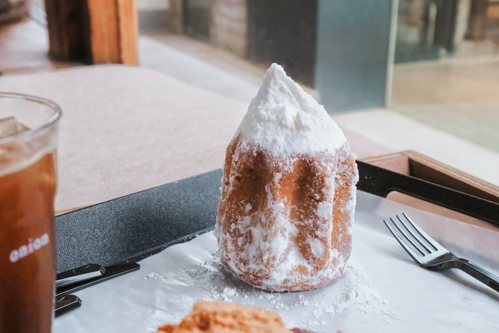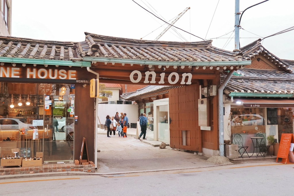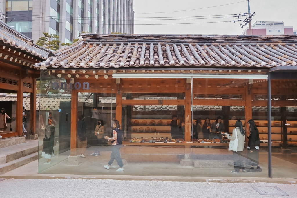第一間店《Cafe Onion》位在聖水洞是以廢墟風聞名,第二間店位在彌阿洞的《onion mia》較顯少人知,是工業風但卻藝術氣息濃厚的店,但我最愛的是這次前往的三號店《Cafe Onion Anguk》,在傳統韓屋村席地而座品一杯咖啡、與好吃如雪山的招牌pandoro,穿越古今。
