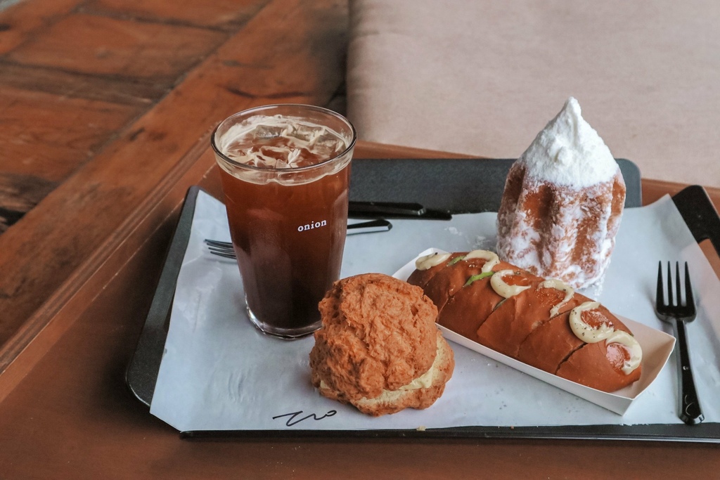 Onion麵包都是新鮮現作,一旁設有烘焙坊,出爐時還會聞到陣陣麵包香,光是一下午就補了好幾次。