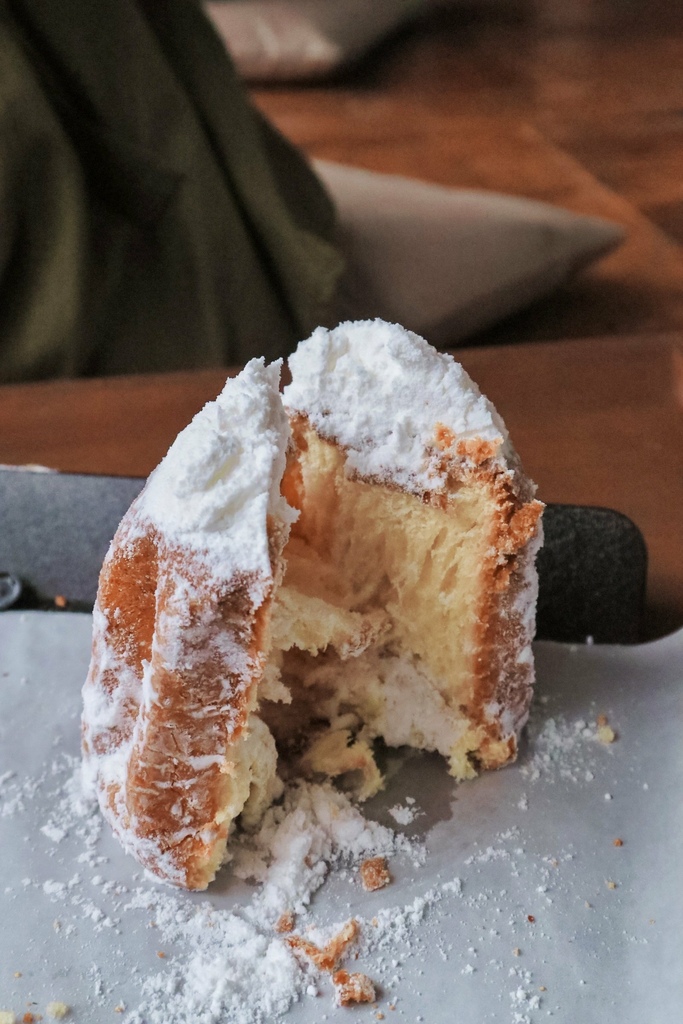 最讓我驚豔就是這名為潘朵拉的麵包,起源於義大利傳統甜麵包,源自維羅納地區,在聖誕節時必吃的糕點,頂層的雪白象徵時節裡的雪花或是夜空中最閃亮的星星。