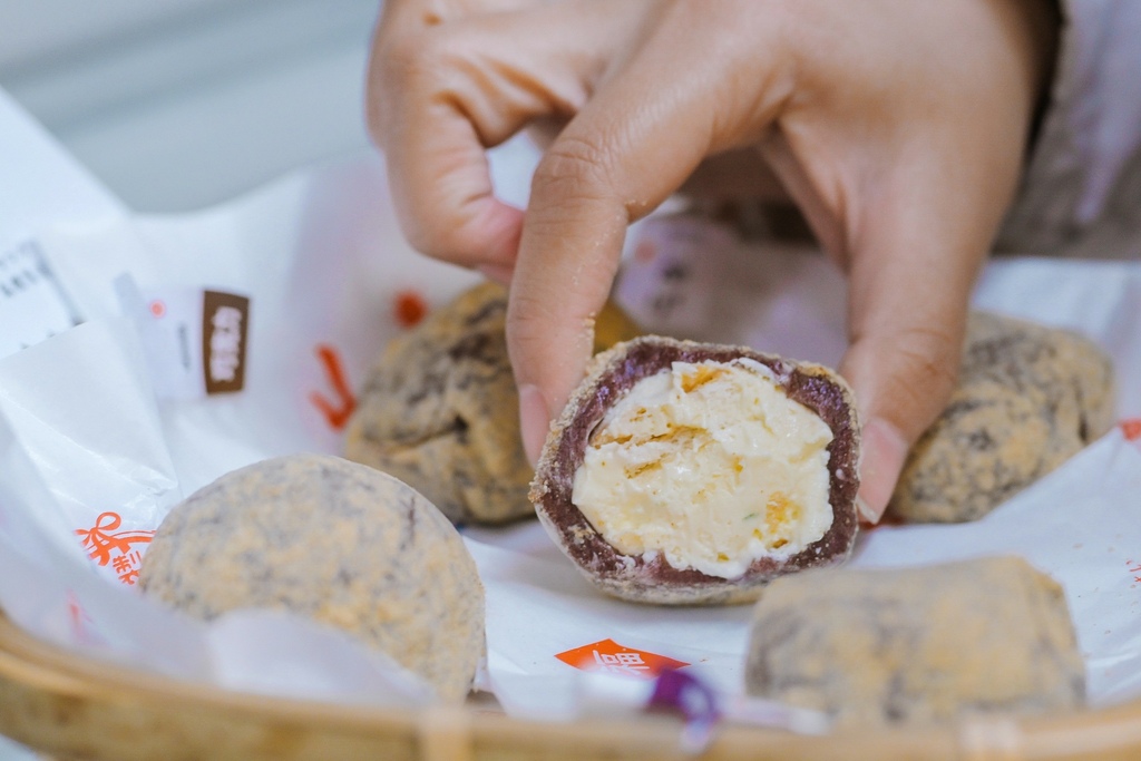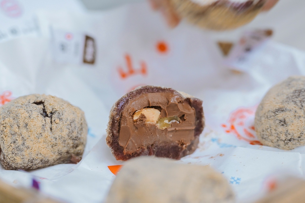 這款是冷凍款,個人建議退冰5-10分鐘後吃,咬起來像冰淇淋內餡,麻糬皮非常薄、內餡特別的飽滿,