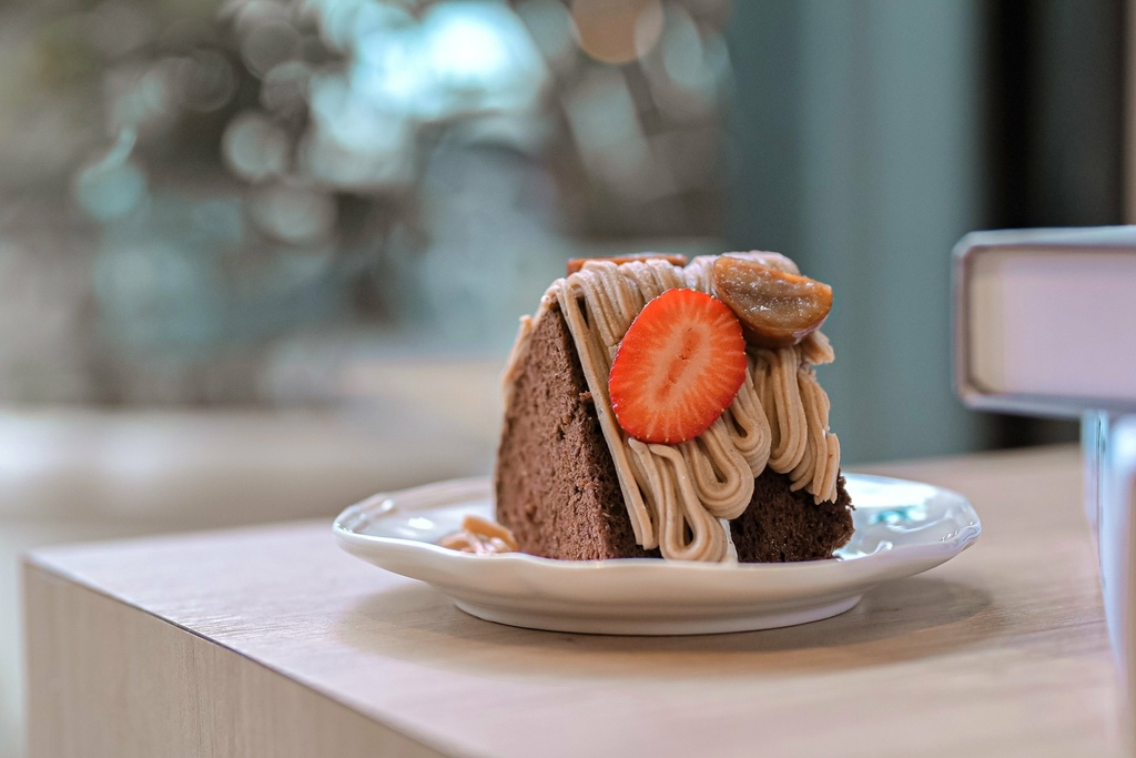 栗子泥細緻滑順帶有淡淡酒香,巧克力蛋糕很鬆軟,糖漬栗子與草莓是重頭戲,畫龍點睛的搭配,配在一起有夠順口好吃的,而且不會太甜膩表現很優秀。