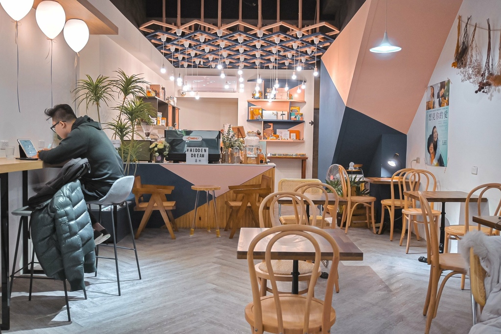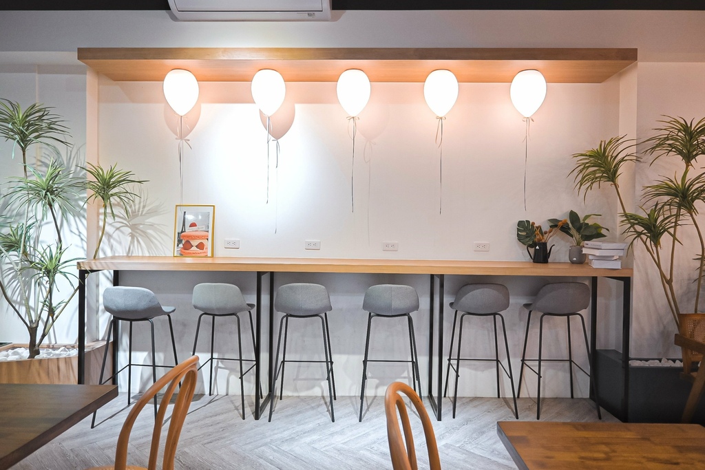 我很喜歡這面牆,有點文青又有點浪漫,氣球裝飾承載著夢想,好像要帶你起飛一同來品嚐嚐夢追夢的甜點。