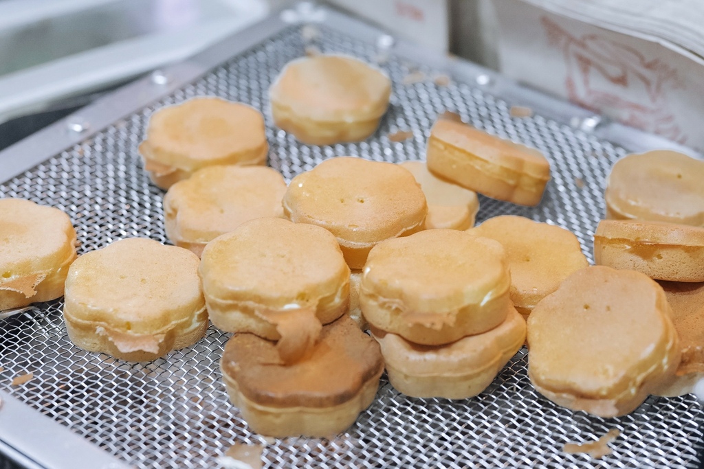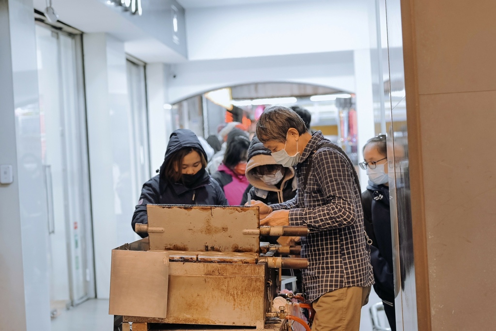 烤得有焦脆也有較軟的雞蛋糕,這邊的雞蛋糕是自己放錢下去後在挑選裝袋,像我比較喜歡焦脆一點就直接跟老闆說(顏色較深),沒等很久就出爐自已裝袋,老闆就專心顧爐與出爐。