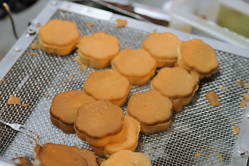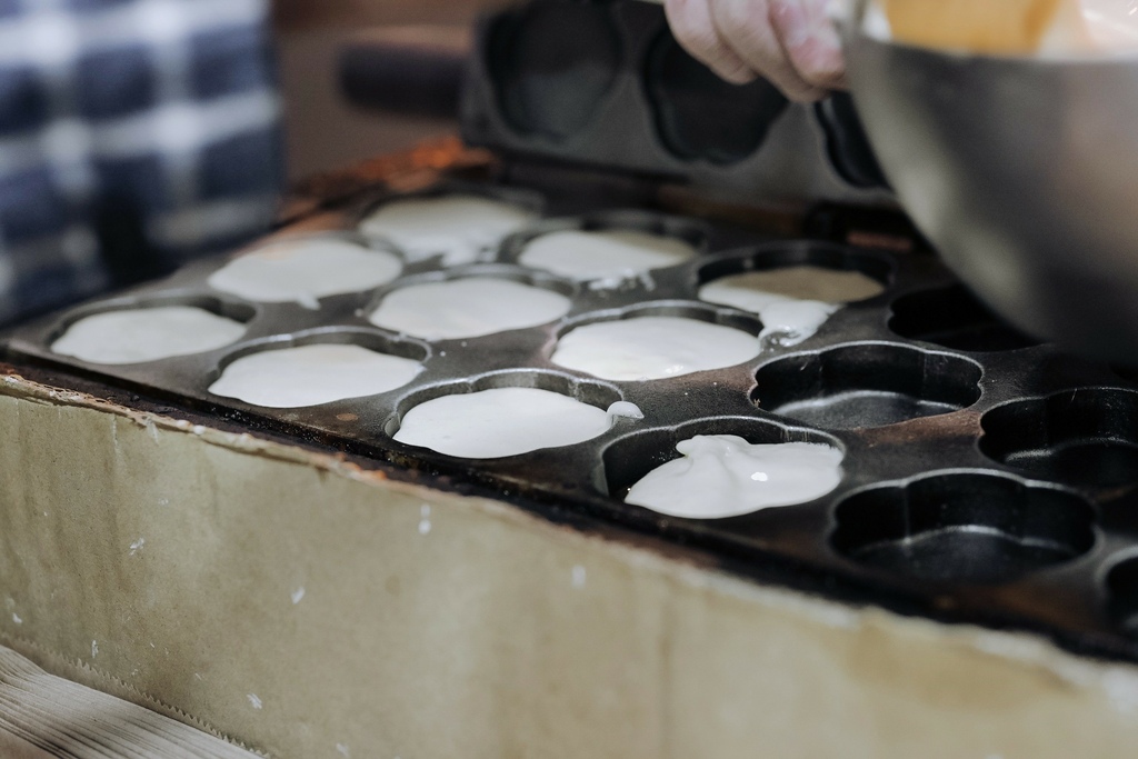 梅花雞蛋糕使用炭火燒,功夫很到味,很快一顆顆梅花雞蛋糕就烤好了。