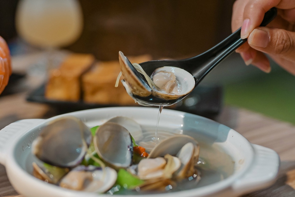 結合了蛤蠣的鮮美與絲瓜的甜味,蛤蠣非常的大顆肉汁飽滿,一點點薑絲提味既鮮甜又清爽。