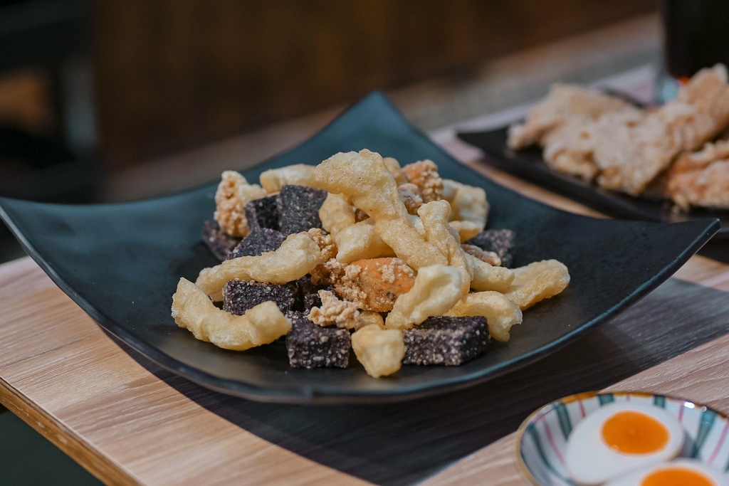 豆腐塗抹上味噌後炙燒,四塊像金磚一樣的豆腐送上,味噌鹹鹹甜甜、外脆內嫩,豆腐超多汁,有驚豔到我,這款強力推薦必點。
