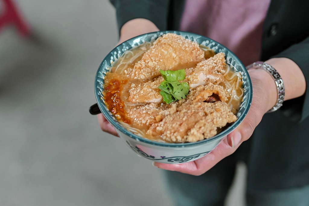 聽其它桌客人說雞排是隱藏菜單,菜單上沒有這款,本來還在猶豫要點什麼,一聽到這小道消息立馬就決定是這款,隱藏版越神秘我越愛。比手掌還要大的雞排用另一個盤子呈上來,喜歡軟些可以將雞排放在麵線中,雞排的炸衣會比較濕潤些,雞肉大塊厚實,麵衣酥脆鹹香,好好吃。