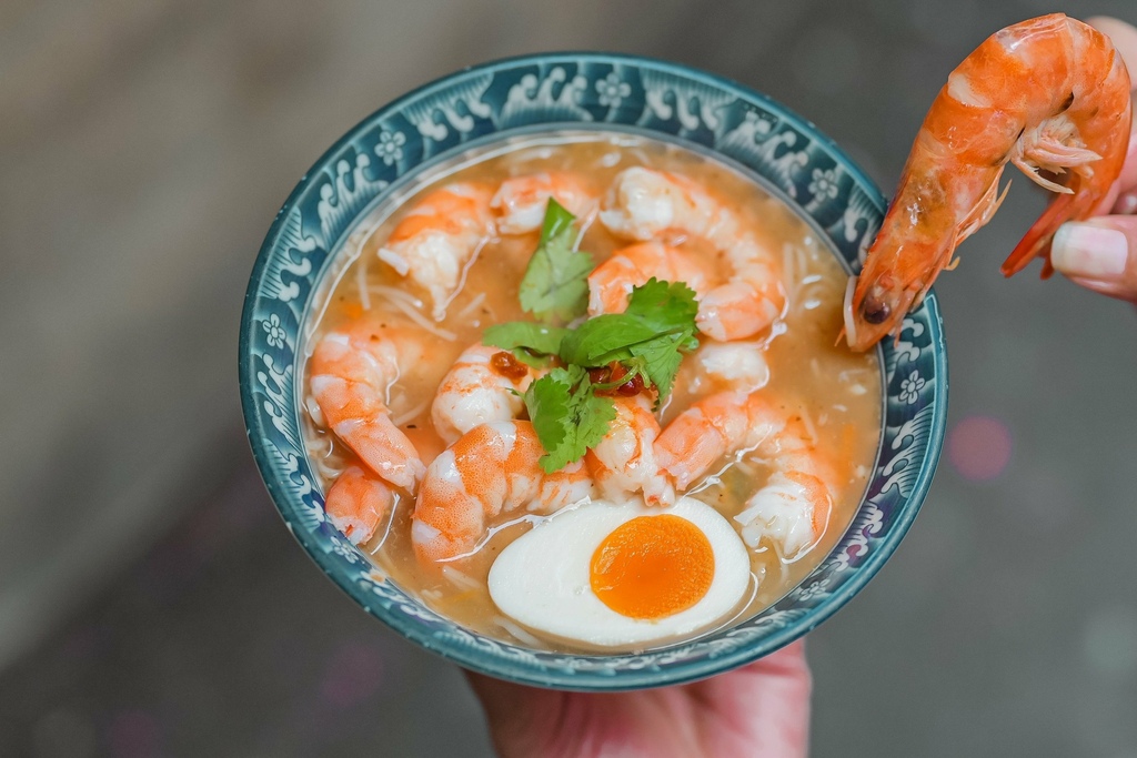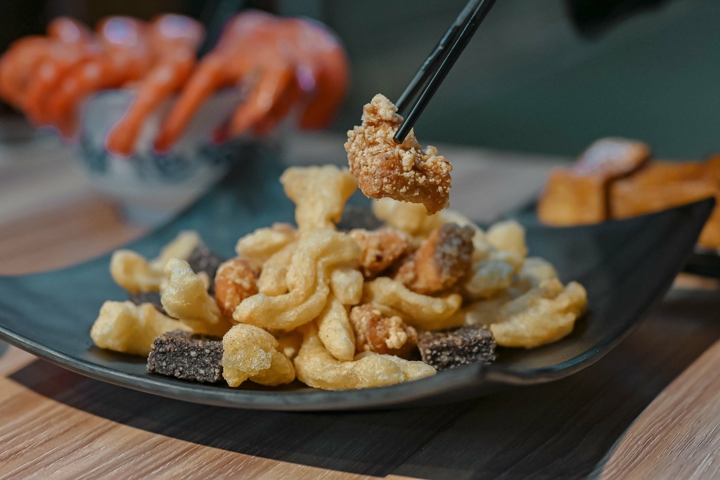 15隻鮮蝦剝起來也是個體力活,我自已撥到眼神死,要考驗男友的耐心度請必點這一道,撥了一陣子後終於可以大快朵頤一番,享受豐收的成果(淚)。不愧是海中蝦蝦,每一隻超彈牙又鮮美,每咬一口就是來自大海強力的浪花衝擊,配著麵線吃超級大滿足,感動想哭,一個人吃15隻太過癮!