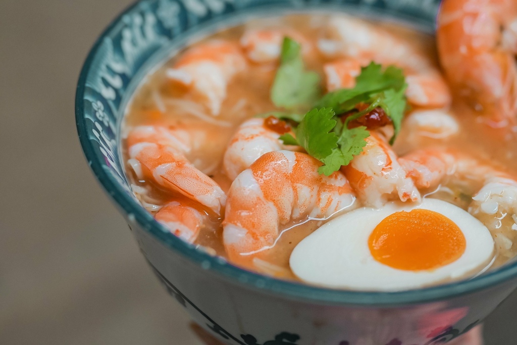 日式料理常見的一款,蛋白軟嫩帶有淡淡醬油味,蛋黃煮到有點濃稠膏狀,將溏心蛋配麵線也是一個很創意的搭配。
