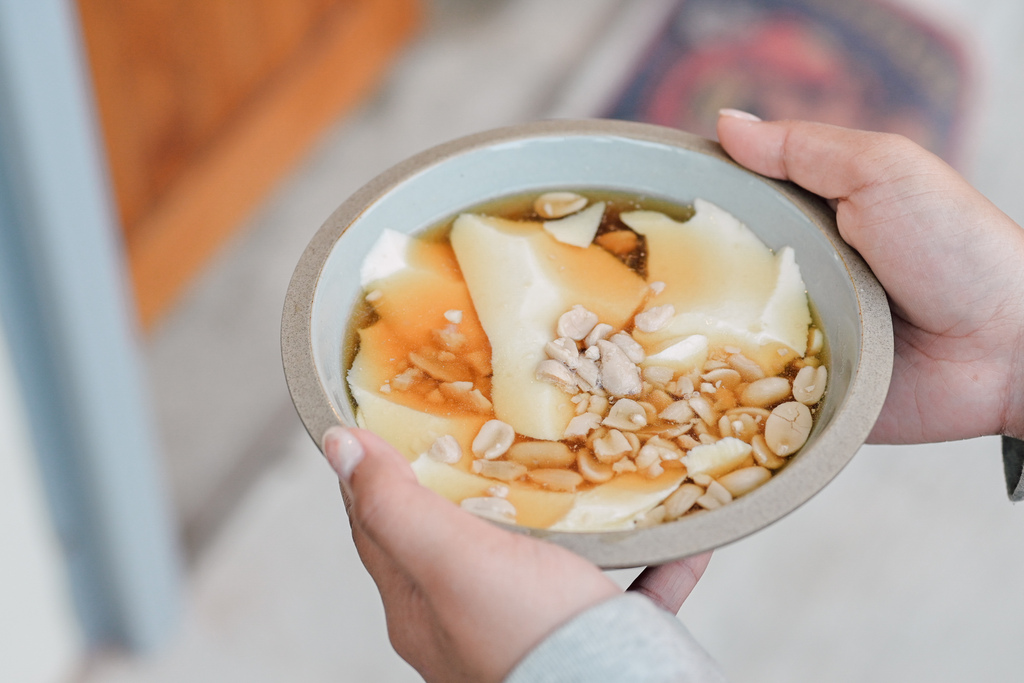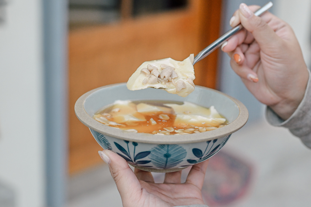 使用鹽滷豆花,帶有古早傳統滋味,喜歡花生的我們還選了花生當配料。