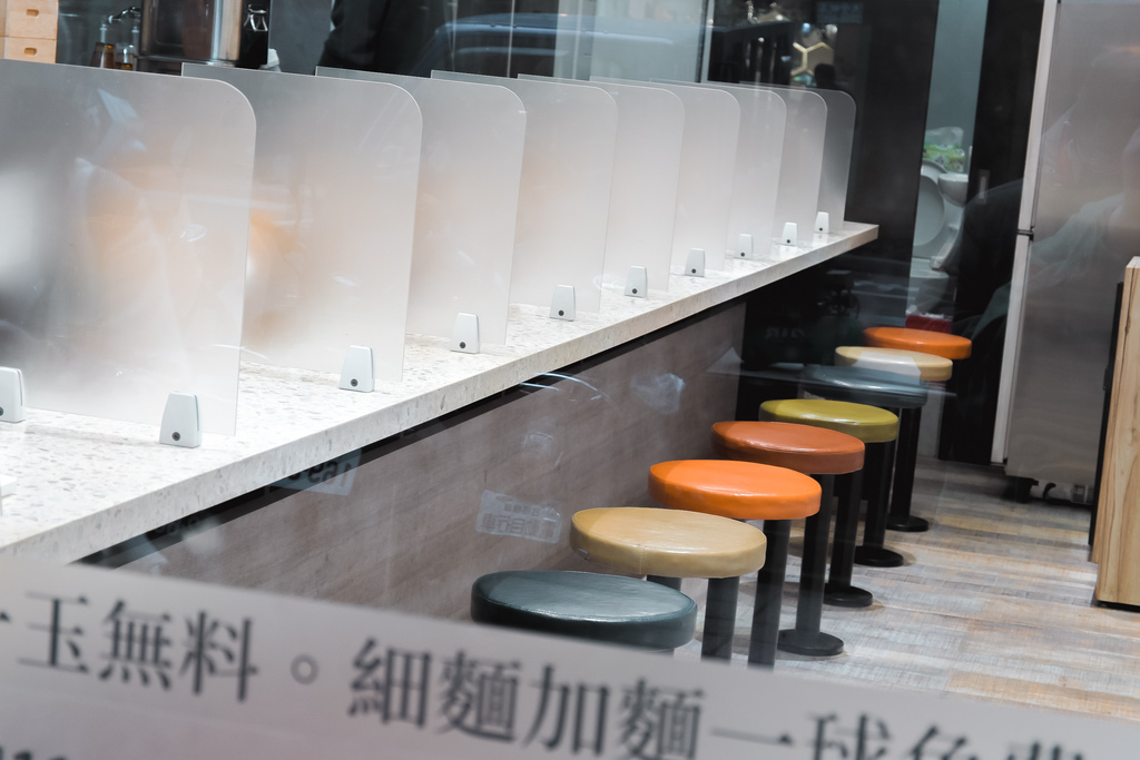 防疫期間用隔板隔開一人一席座位,牆上可以掛厚重外套,座位座起來我覺得是舒適的。點餐使用點餐機,可利用街口支付、現金。當日碰到的菜色是以雞白湯、雞清湯為主柳麵在細分口味,當日限定菜色陳皮麻婆豆腐、七味牡蠣佃煮、奶油味噌牡蠣佃煮等,還有加點項目可選擇。