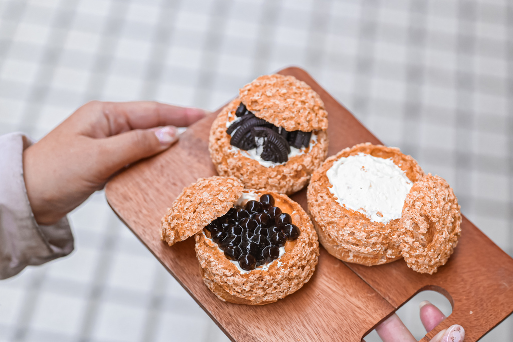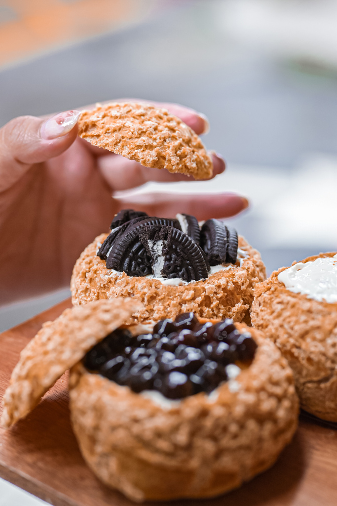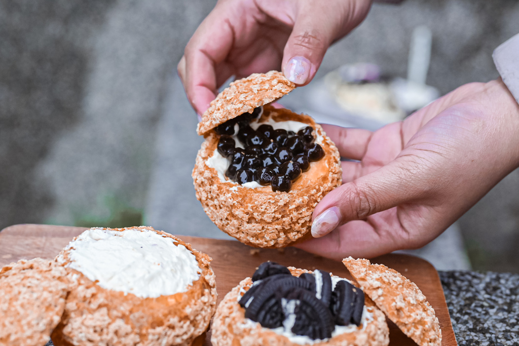一整個泡芙擠入滿滿邪惡爆滿的奶油,最上面放上珍珠、OREO在口感上增添不少樂趣,重點是奶油吃多也不膩口。