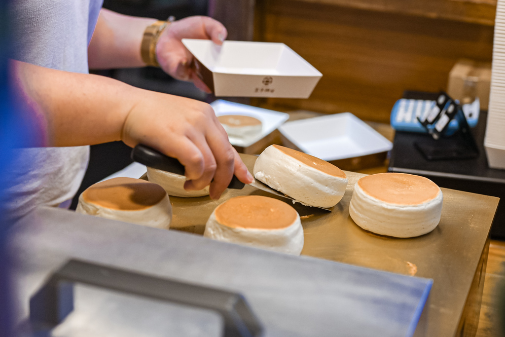 下單後的舒芙蕾都是現點現做,在等待過程中看著師傅製作過程好療癒喔,每次製作厚鬆餅都有一定的製作比例,製作一份約等10分鐘左右,真的要耐心等候。