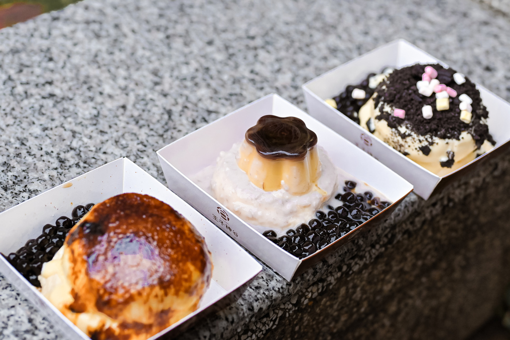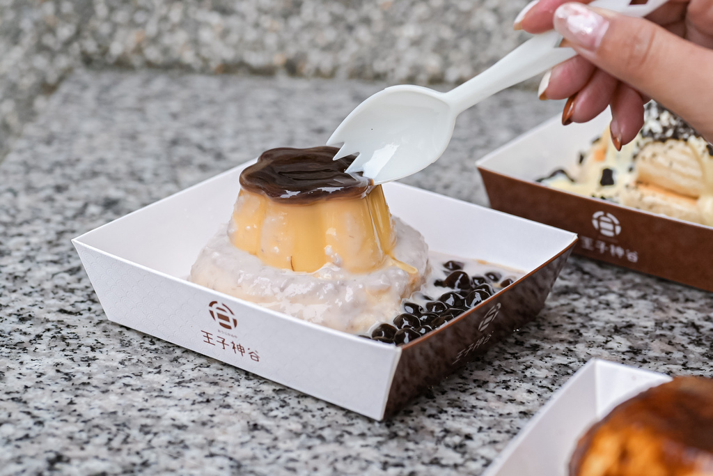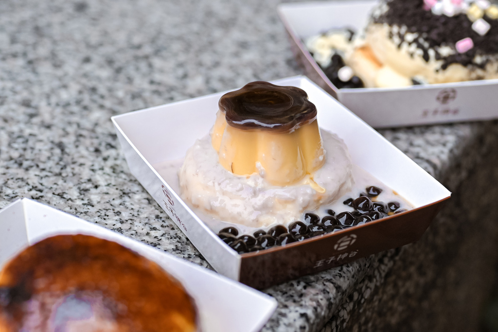 這款不同點是使用一層舒芙蕾淋上芋泥配上一整顆布丁,芋泥很滑順帶有芋頭顆粒配上珍珠、布丁與舒芙蕾,怎樣交換吃,多層次口感都很豐富。