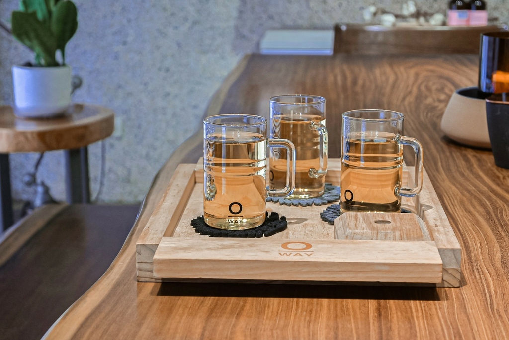 提供給客人的茶品是南非有機南非博士綠茶,無咖啡因,喝起來很純淨,口感像淡淡的青草茶,我在家也常常喝,比起冷飲熱飲對女性來講也比較好。