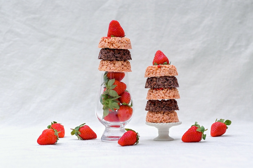 莓果脆片以玉米脆片搭配餅乾脆片為基底,配上酸酸甜甜充滿幸福滋味的草莓,還撒上新鮮草莓製成的草莓丁,增添不少可愛感。