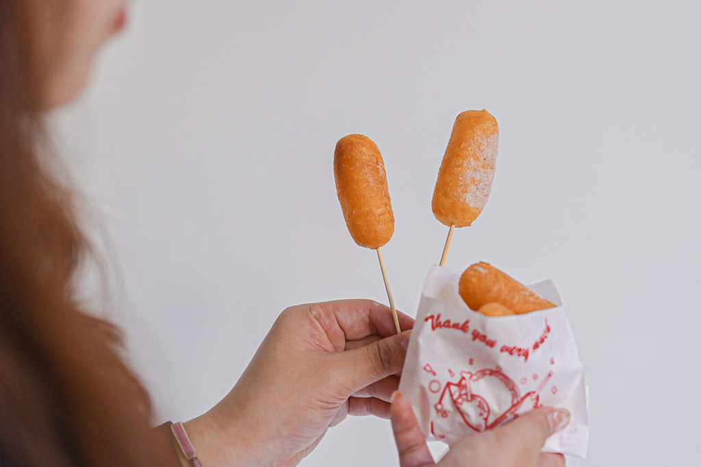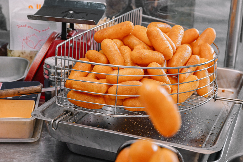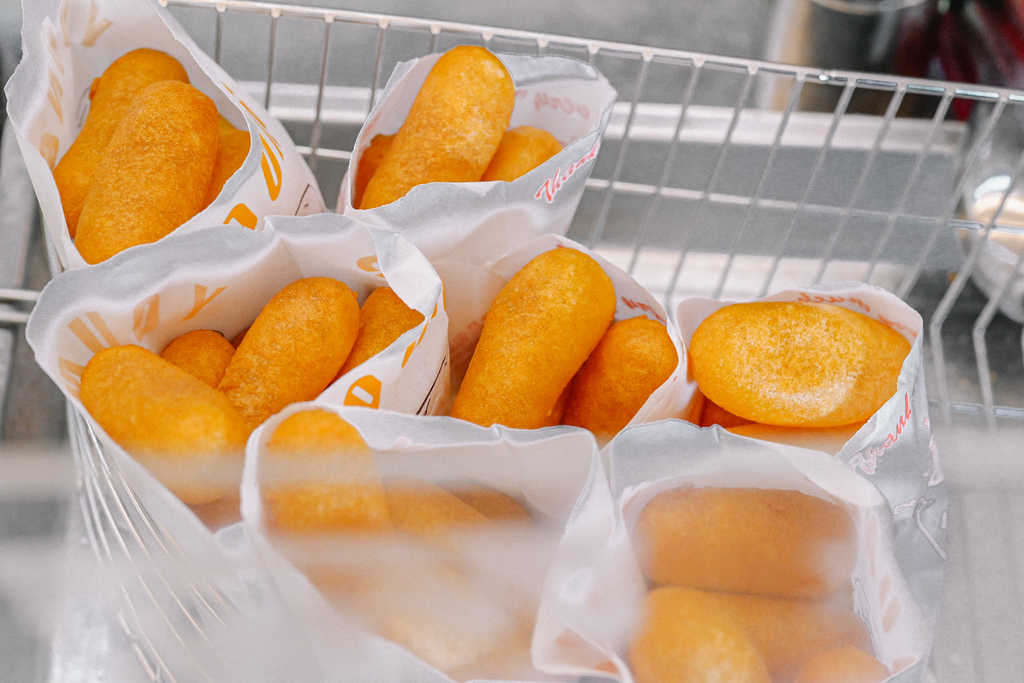 地瓜球長得也太像巨型乖乖形狀了吧,不過也好像我剛剛吃完張姐美國大熱狗的縮小版(笑),如果擠上番茄醬與芥末醬就更無違合感了。