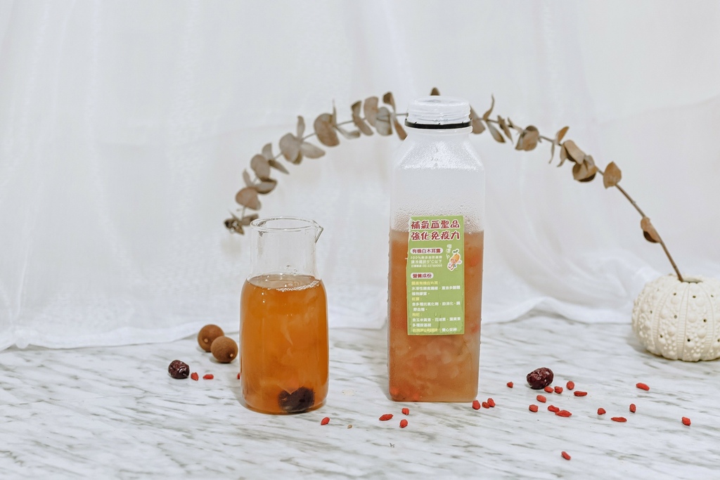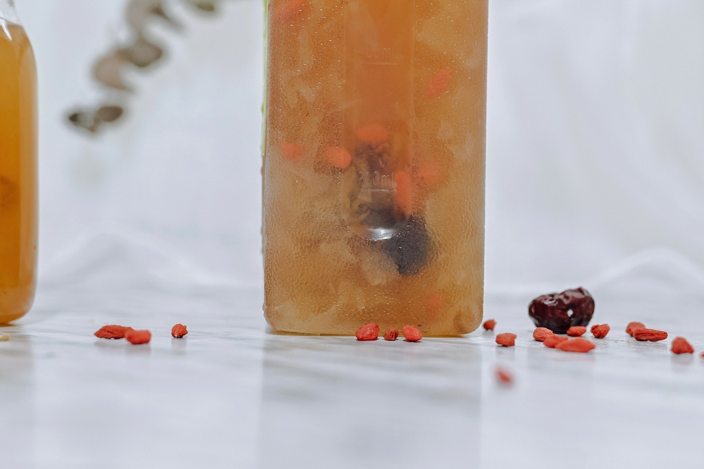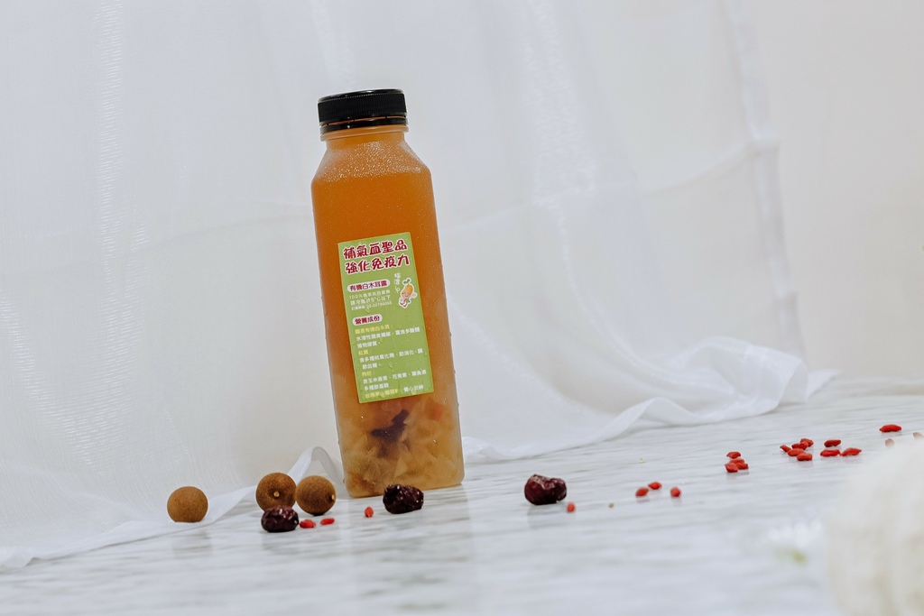 看起來就像濃縮版本的銀耳紅棗湯,全部都在這一瓶中,底下滿滿的料看的出來真材實料,白木耳選自有機食材,無農藥,無汙染,喝的安心。