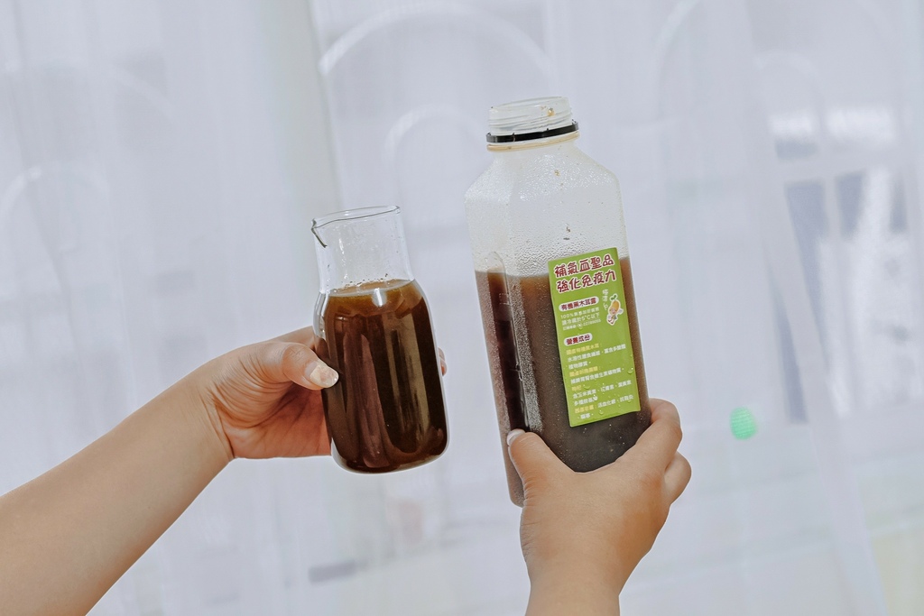將有機黑木耳打碎與黑糖薑汁搭配過濾,沒想到搭配起來香甜好喝,還有點碎碎的黑木耳口感,口感極佳,第一口就被驚豔到。