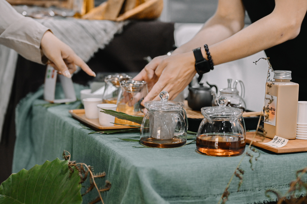 二樓是網美區,有一間是擺放茶具,可以自己在那邊拍,還有搭一個棚仿造阿里山的環境,一閃一閃就像螢火蟲般閃爍。這邊有專業的攝影團隊,會幫忙拍些美美的照片,還有活動可以參加,只能說阿里山這個展覽活動辦得非常用心,吃喝玩樂全包辦。