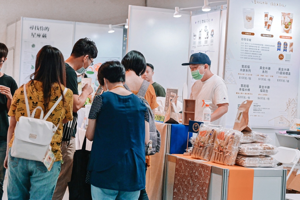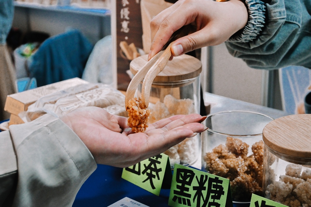 EAZY GO展中最先介紹前陣子造訪奮起湖老街體驗到的「奮起福米餅」,創辦人在城市打拼後回到家鄉創業,回歸初心,以回憶中母親製作的米餅為發想概念,搭配當地食材,創新米食文化,曾榮獲2020年「食品界米其林」比利時iTi評鑑大賽-風味絕佳2星獎(International Taste Institute)、2021荷蘭A.A. Taste Awards 全球純粹風味評鑑三星獎殊榮、農糧署全國米糧烘培精品獎,是大家到嘉義推薦人氣伴手禮之一。