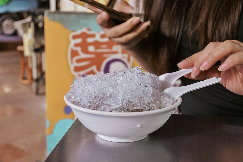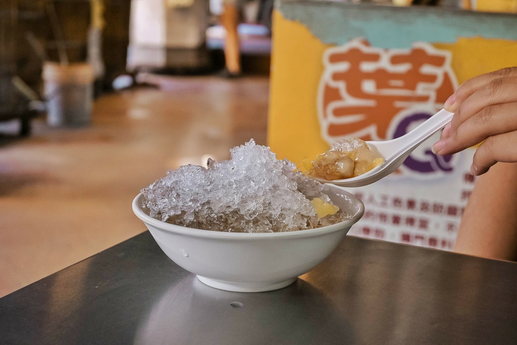 一送上桌的綜合粉圓,堆疊的像是冰山一樣,粗曠傳統的ㄔㄨㄚˋ冰滿到看不到料,非常澎派。冰ㄔㄨㄚˋ的超有口感,冰塊很大顆,需要用齒力大口大口的咬,牙口不好的我真怕牙齒會崩掉XD,但吃得太過癮了,很涼爽。
