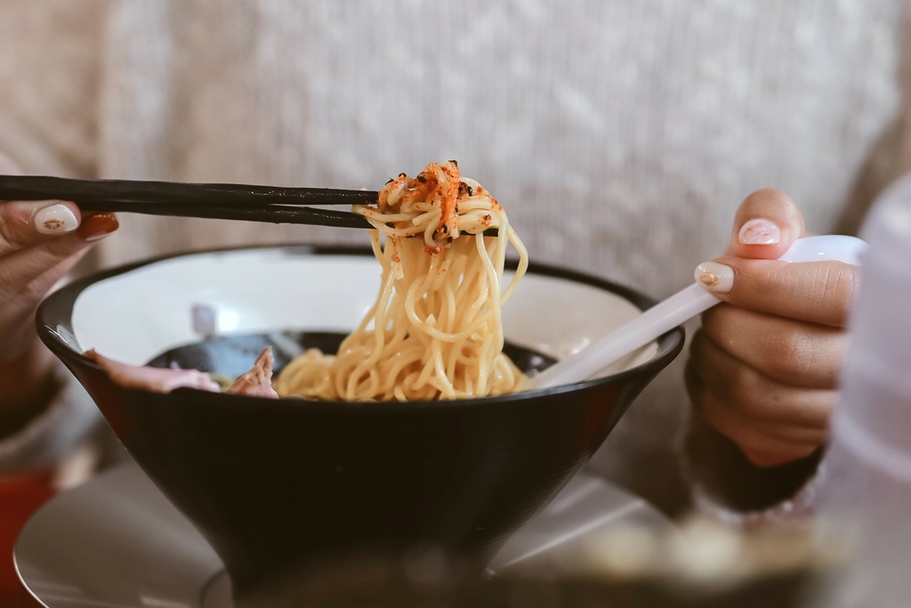 柚子胡椒日式湯頭,柚香混合雞骨與豬骨香氣,入口很濃厚,對於愛吃辣的我覺得沒有辣度,需要再加點七味粉增加味道。湯頭散發淡淡柚子香氣很剛好,但重口味的天天覺得沒什麼柚子味,就再加點柚子胡椒醬增加湯底濃度就好。