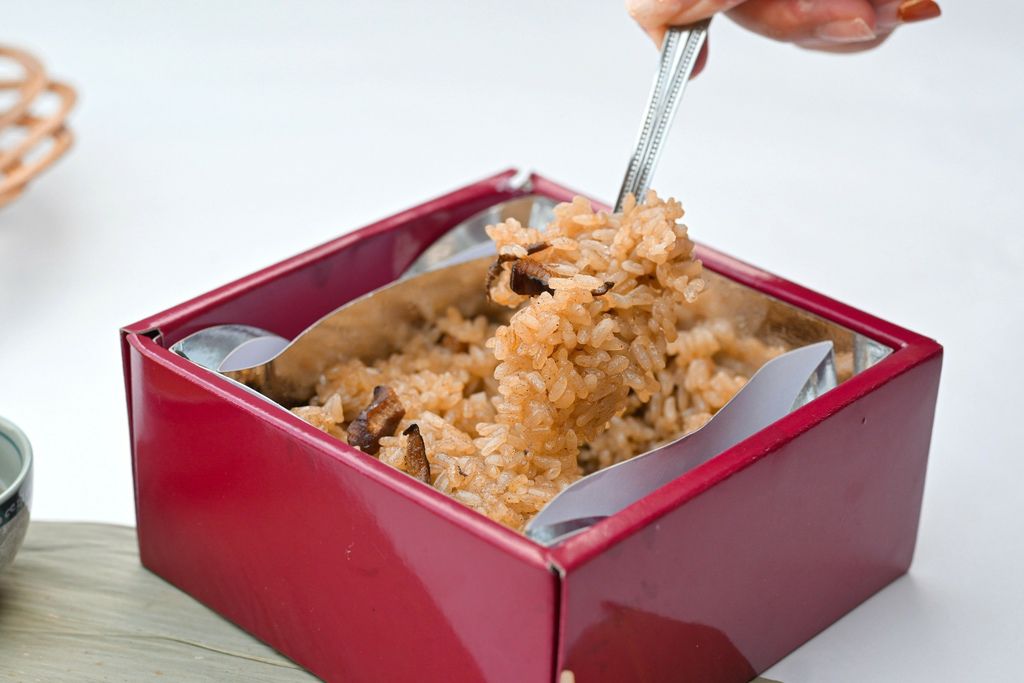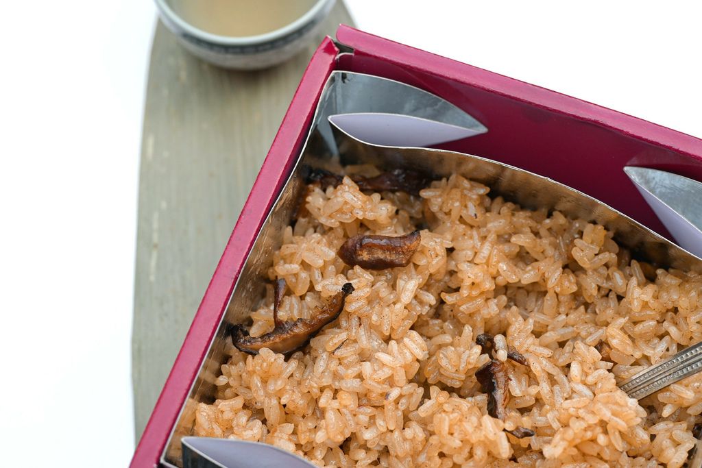 嚴選糯米使用醬油小火慢炒與麻油爆香,內還有香菇、肉絲等佐料,盒子裝著一份約450G,對我來說分量很剛好,小食量還可以分兩餐吃光。蒸好的油飯香氣迷人,入口口感粒粒分明、吃起來鬆軟香甜,咀嚼中可感受到米的Q彈感與香菇香、麻油香在嘴中擴散開來,吃多了也不油膩,濃濃古早味道,非常好吃,雖然與肉粽的飯很雷同,但不同之點在於多了炒後的香與多了香菇,不加甜辣醬也是相當好吃。